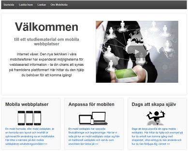 Studiematerialets webbplats, http://www.mobilsida.oer.folkbildning.net, är skapat med hjälp av verktyget WordPress.org. Webbplatsen är skapat och designat i det kostnadsfria temat ”Responsive”. ”Responsive” är ett tema som automatiskt mobilanpassar layouten på hemsidan vid besök genom en mobiltelefon. Det enda kravet ifrån användaren är att ha mobilvänligheten i beräkning för skapandet av innehållet – bilder, texter och filmer. Då ”Responsive” förändrar layouten så är det viktigt att bilder, filmer och texter anpassas så att dessa fungerar även på mobiltelefonen. Bilderna på webbplatsen är köpta ifrån www.freedigitalphotos.net.